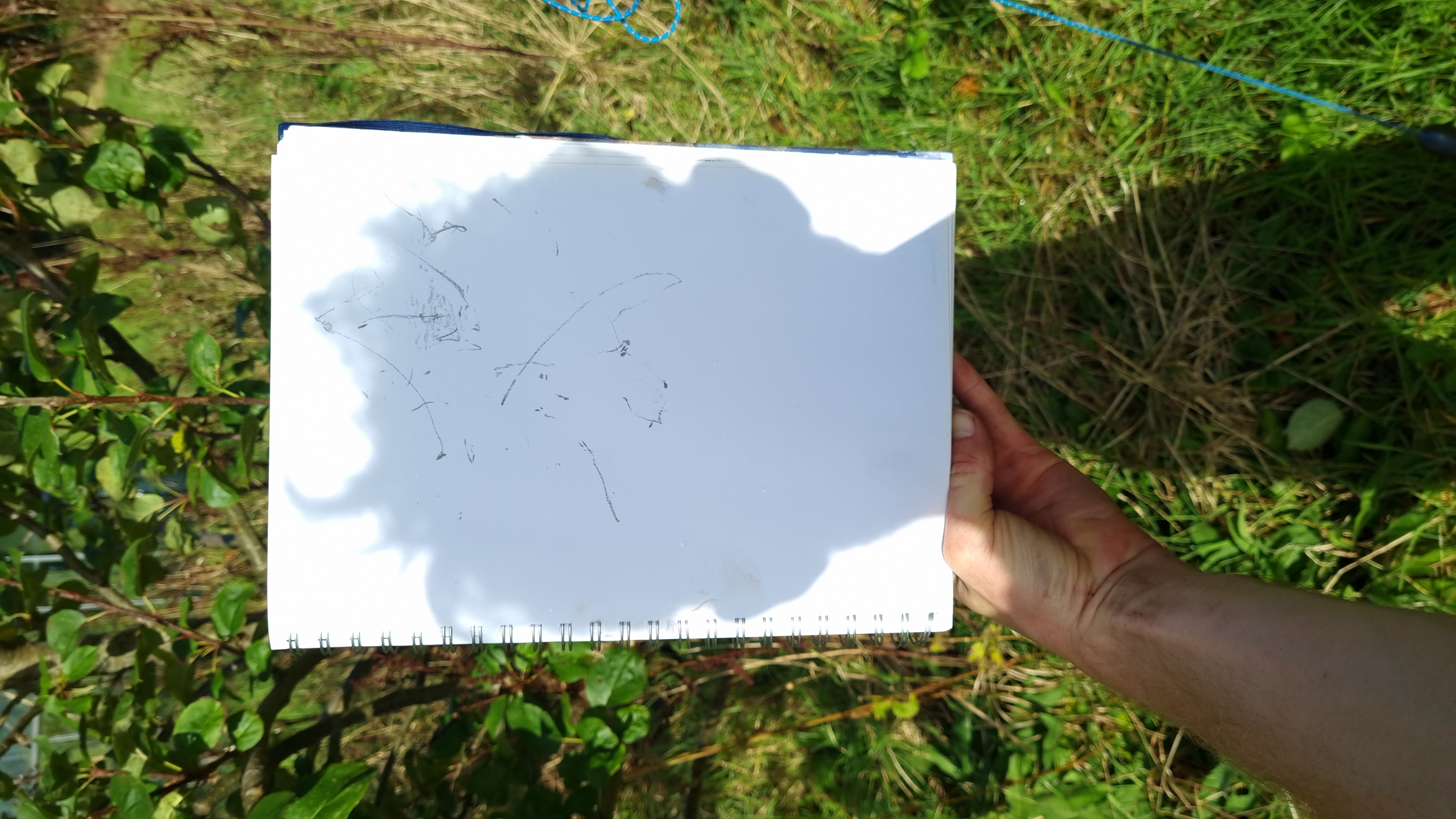 Self portrait with graphite, an apple tree, a shadow and a rope.