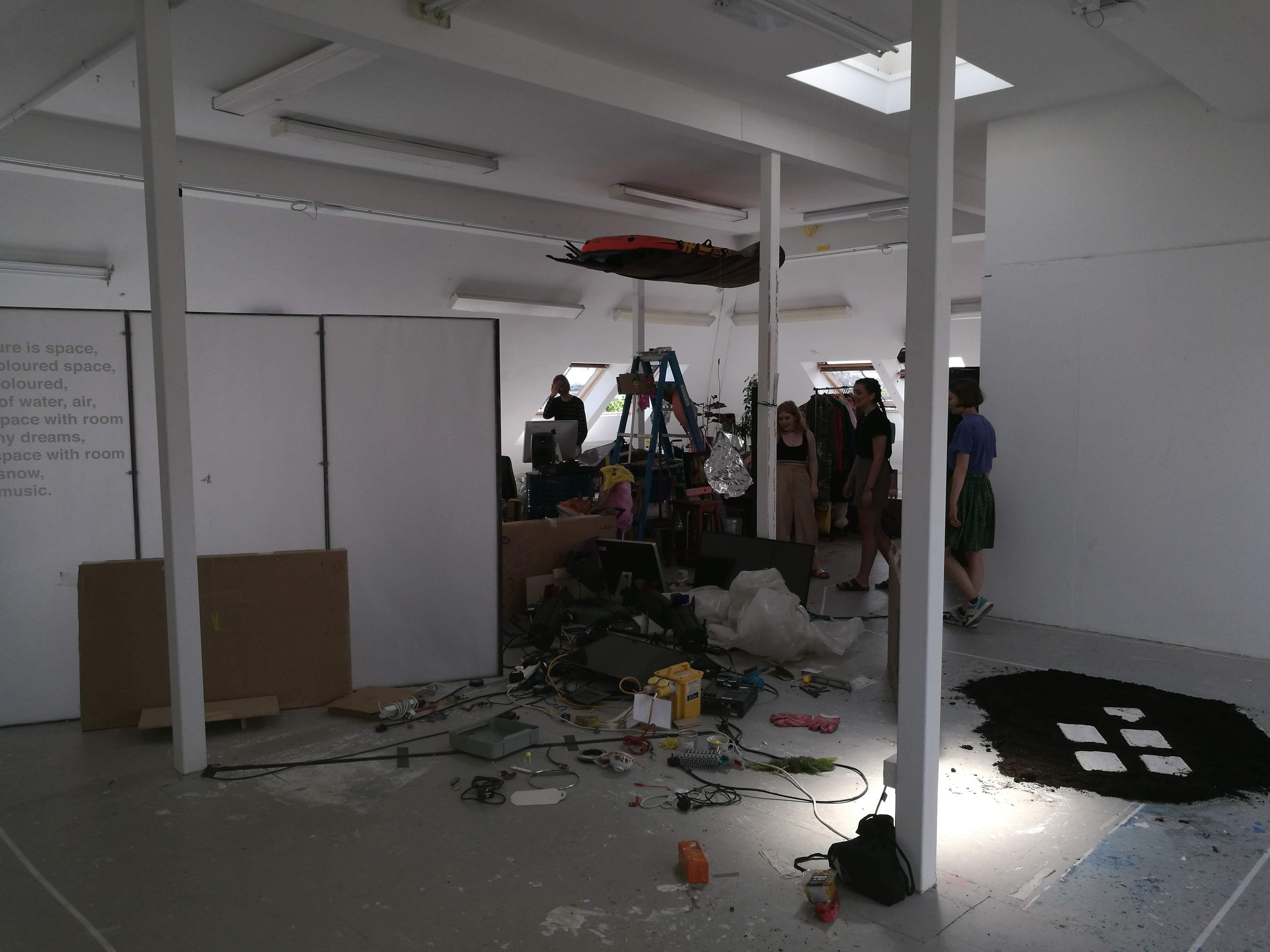 JOMO in the attic took place at Falmouth Univerity’s 2018 Fine Art degree show. The attic was transformed into an evolving space holding events, performances, talks along with the production of new work. The space was always active and flexable, often there were multiple things happening at once, overlapping eachother.